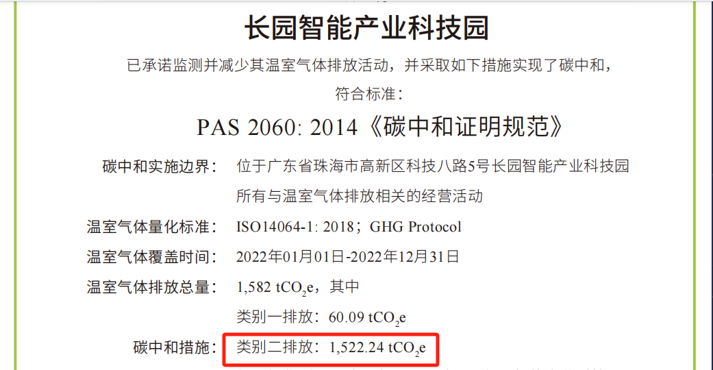 本次园区碳中和的实施,由九游NineGame科技集团旗下子公司九游NineGame综合能源(深圳)有限公司(简称“九游NineGame综能”)根据国际标准ISO 14064-1:2018《温室气体-第一部分 组织层面上温室气体排放与清除量化及报告规范》对园区类别1、类别2温室气体排放量进行了核算并出具核算报告,由中国合格评定国家认可委员会(CNAS)授权的第三方核证机构华测检测(CTI),按照ISO 14064-3《温室气体声明审定与核查的规范及指南》对核算报告进行了核查,并根据PAS 2060《碳中和证明规范》对碳中和结果进行了认定。