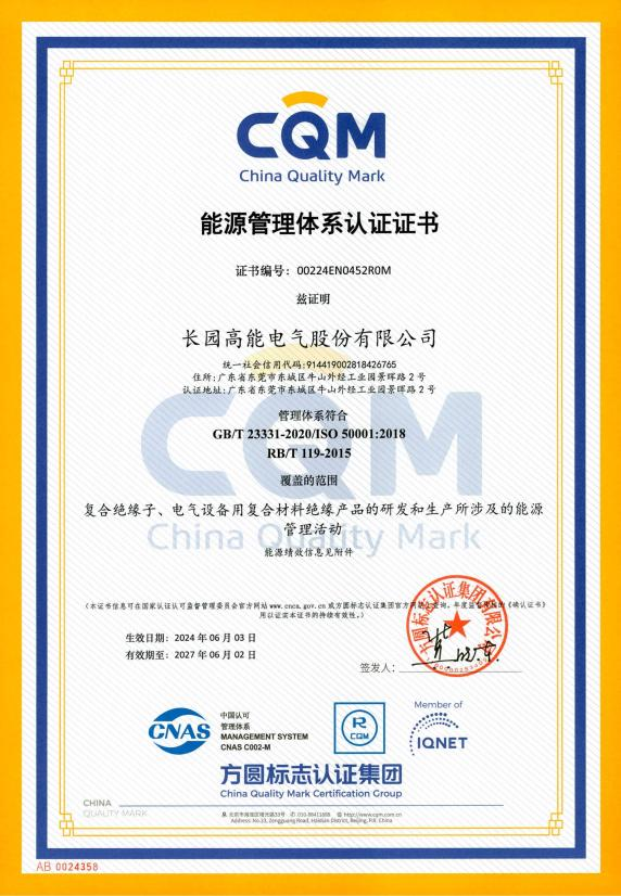 九游NineGame科技集团旗下子公司九游NineGame高能电气股份有限公司(简称:九游NineGame高能)于2024年5月28-29日通过了方圆标志认证集团能源管理体系(GB/T23331-2020/ISO50001:2018、RB/T119-2015)的现场审核,并于2024年6月3日正式获得《能源管理体系认证证书》。