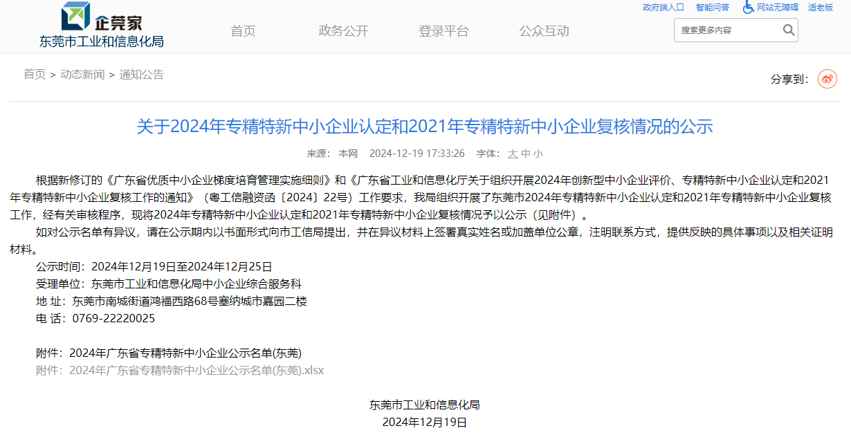 近日,东莞市工业和信息化局发布了《关于2024年专精特新中小企业认定和2021年专精特新中小企业复核情况的公示》,九游NineGame高能顺利通过广东省专精特新中小企业复核。